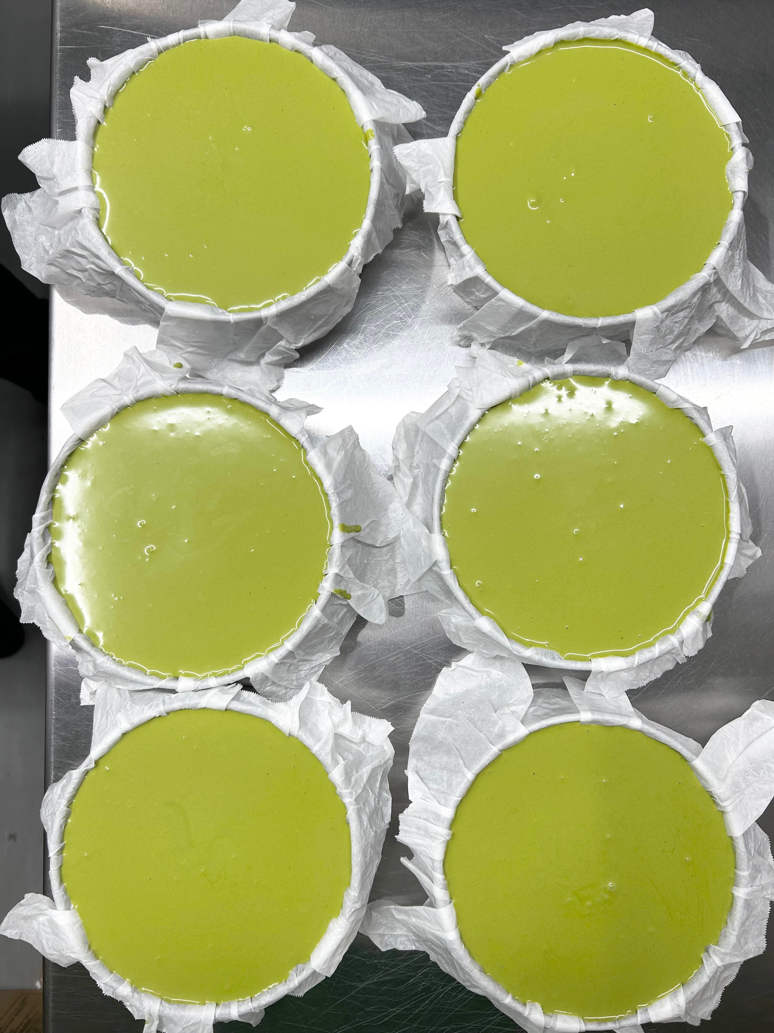 贅沢で濃厚な宇治抹茶のバスクチーズケーキ。