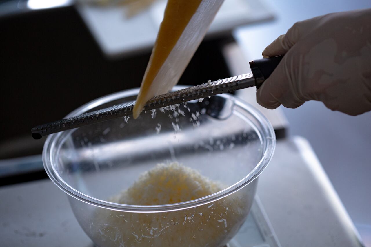 さらには「24ヶ月熟成パルミジャーノレッジャーノ」を、薫りが立つようブロックから削って混ぜ込んでいます。