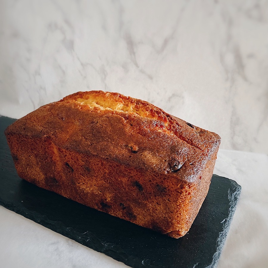 焼き上げ直後の仕上げにも、ラム酒をたっぷり打ち、しっかりと風味きかせておりますので、白ワインとのペアリングを堪能いただきたいケークです。